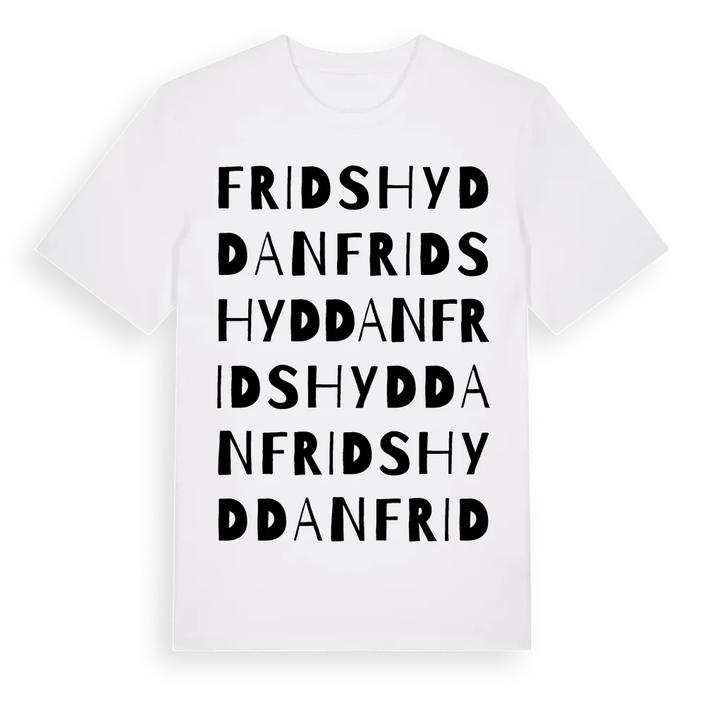 Fridshyddan ordlek t-shirt är inspirerad av Fridshyddan i Uppsala län, Sverige. Tröjan är designad för dig som har en speciell koppling till platsen – oavsett om du bor här, har rötterna här eller bara älskar Fridshyddan.