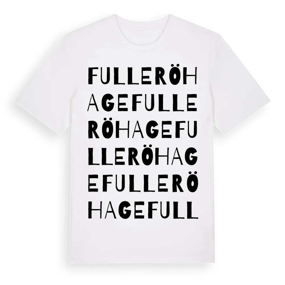 Fullerö Hage ordlek t-shirt är inspirerad av byn Fullerö Hage i Uppsala län, Sverige. Tröjan är designad för dig som har en speciell koppling till platsen – oavsett om du bor här, har rötterna här eller bara älskar Fullerö Hage.