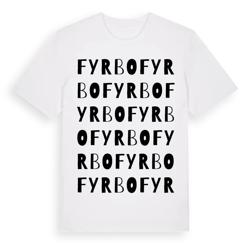 Fyrbo ordlek t-shirt är inspirerad av Fyrbo i Uppsala län, Sverige. Tröjan är designad för dig som har en speciell koppling till platsen – oavsett om du bor här, har rötterna här eller bara älskar Fyrbo.