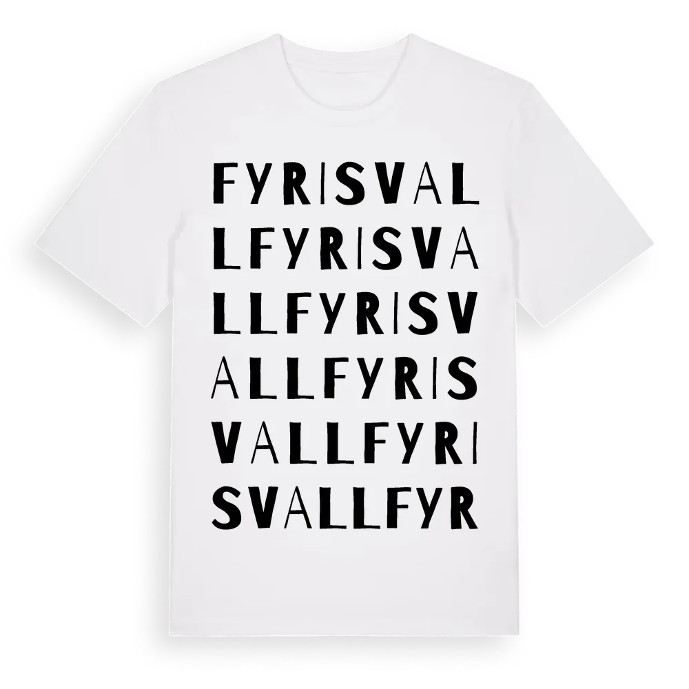 En ordlek byggd på Fyrisvalls namn. Subtilt och klurig – ett motiv som bara de som verkligen känner platsen fullt ut förstår. Premium bomull, unisex – från stadsdelen Fyrisvall i Uppsala län.