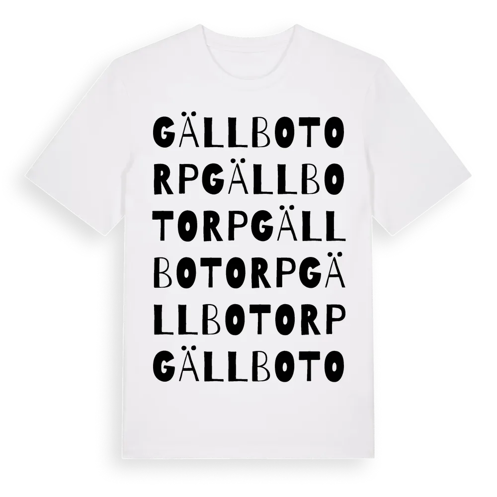 Gällbotorp ordlek t-shirt är inspirerad av Gällbotorp i Uppsala län, Sverige. Tröjan är designad för dig som har en speciell koppling till platsen – oavsett om du bor här, har rötterna här eller bara älskar Gällbotorp.
