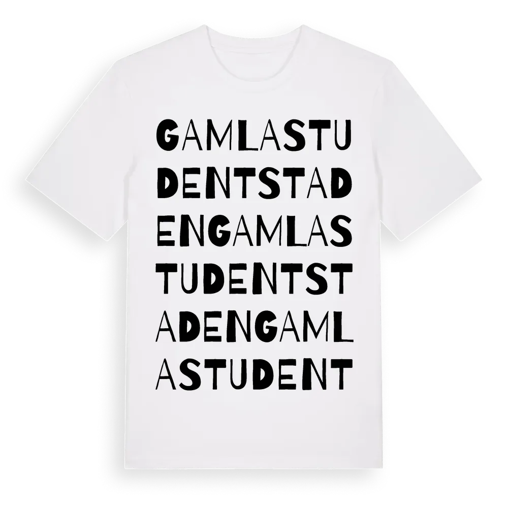 Gamla Studentstaden ordlek t-shirt är inspirerad av stadsdelen Gamla Studentstaden i Uppsala län, Sverige. Tröjan är designad för dig som har en speciell koppling till platsen – oavsett om du bor här, har rötterna här eller bara älskar Gamla Studentstaden.