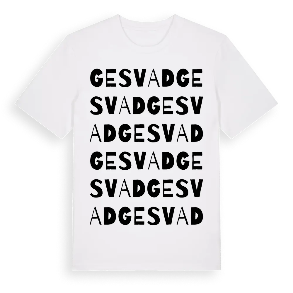 Gesvad ordlek t-shirt är inspirerad av Gesvad i Uppsala län, Sverige. Tröjan är designad för dig som har en speciell koppling till platsen – oavsett om du bor här, har rötterna här eller bara älskar Gesvad.