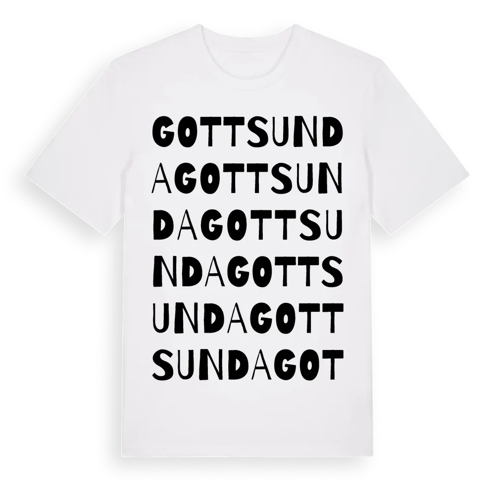 En ordlek byggd på Gottsundas namn. Subtilt och klurig – ett motiv som bara de som verkligen känner platsen fullt ut förstår. Premium bomull, unisex – från stadsdelen Gottsunda i Uppsala län.