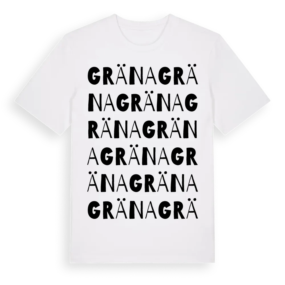 En ordlek byggd på Gränas namn. Subtilt och klurig – ett motiv som bara de som verkligen känner platsen fullt ut förstår. Premium bomull, unisex – från byn Gräna i Uppsala län.