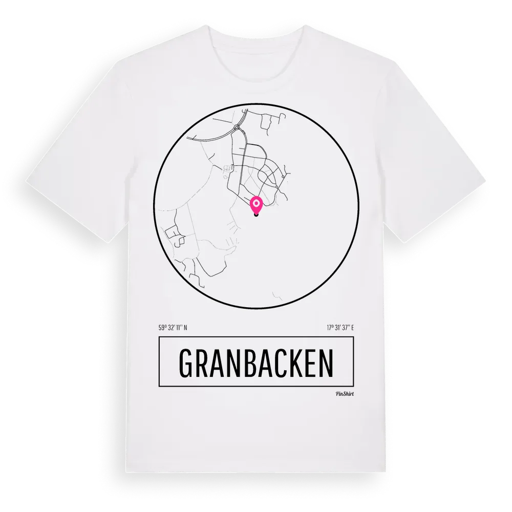Granbacken t-shirt är inspirerad av stadsdelen Granbacken i Uppsala län, Sverige. Tröjan är designad för dig som har en speciell koppling till platsen – oavsett om du bor här, har rötterna här eller bara älskar Granbacken.
