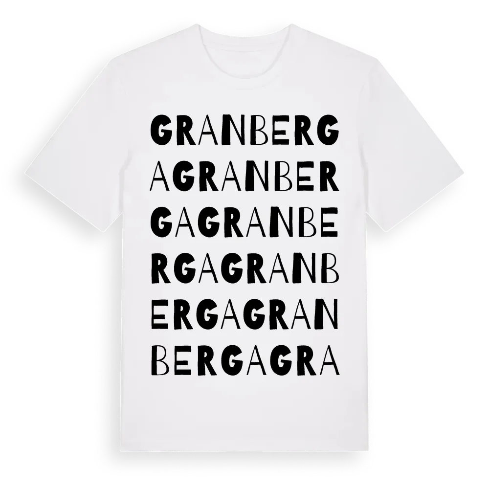 Granberga ordlek t-shirt är inspirerad av Granberga i Uppsala län, Sverige. Tröjan är designad för dig som har en speciell koppling till platsen – oavsett om du bor här, har rötterna här eller bara älskar Granberga.