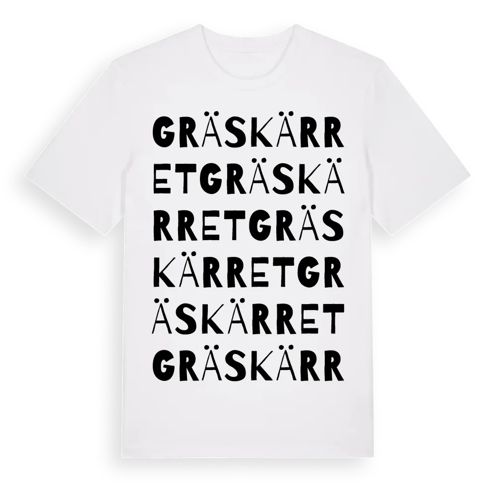 Gräskärret ordlek t-shirt är inspirerad av Gräskärret i Uppsala län, Sverige. Tröjan är designad för dig som har en speciell koppling till platsen – oavsett om du bor här, har rötterna här eller bara älskar Gräskärret.