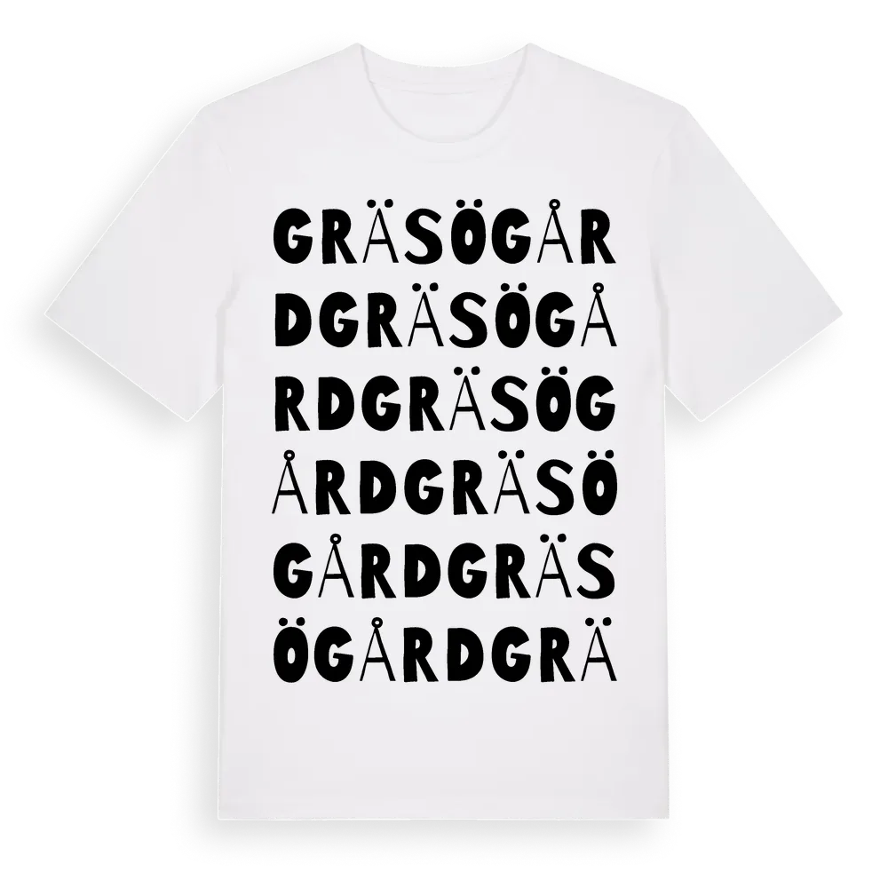 Gräsö Gård ordlek t-shirt är inspirerad av Gräsö Gård i Uppsala län, Sverige. Tröjan är designad för dig som har en speciell koppling till platsen – oavsett om du bor här, har rötterna här eller bara älskar Gräsö Gård.
