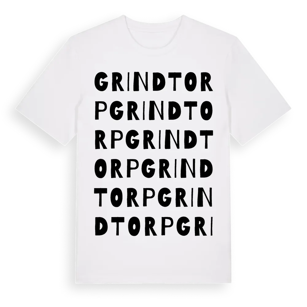 En ordlek byggd på Grindtorps namn. Subtilt och klurig – ett motiv som bara de som verkligen känner platsen fullt ut förstår. Premium bomull, unisex – från Grindtorp i Uppsala län.