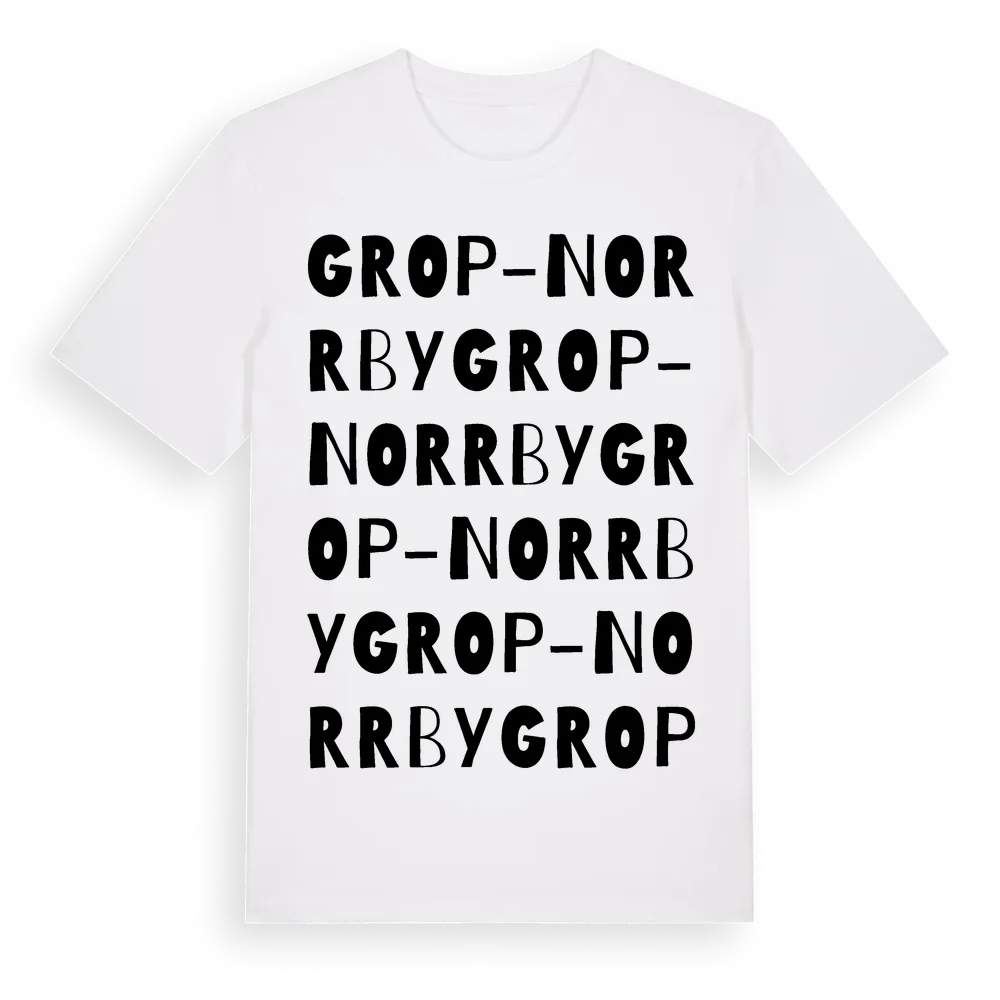 Grop-Norrby ordlek t-shirt är inspirerad av byn Grop-Norrby i Uppsala län, Sverige. Tröjan är designad för dig som har en speciell koppling till platsen – oavsett om du bor här, har rötterna här eller bara älskar Grop-Norrby.