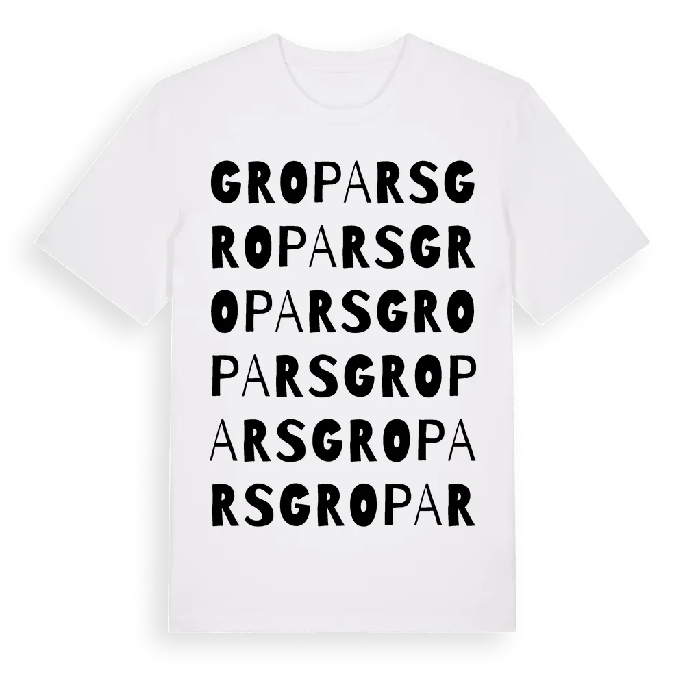 Gropars ordlek t-shirt är inspirerad av Gropars i Uppsala län, Sverige. Tröjan är designad för dig som har en speciell koppling till platsen – oavsett om du bor här, har rötterna här eller bara älskar Gropars.