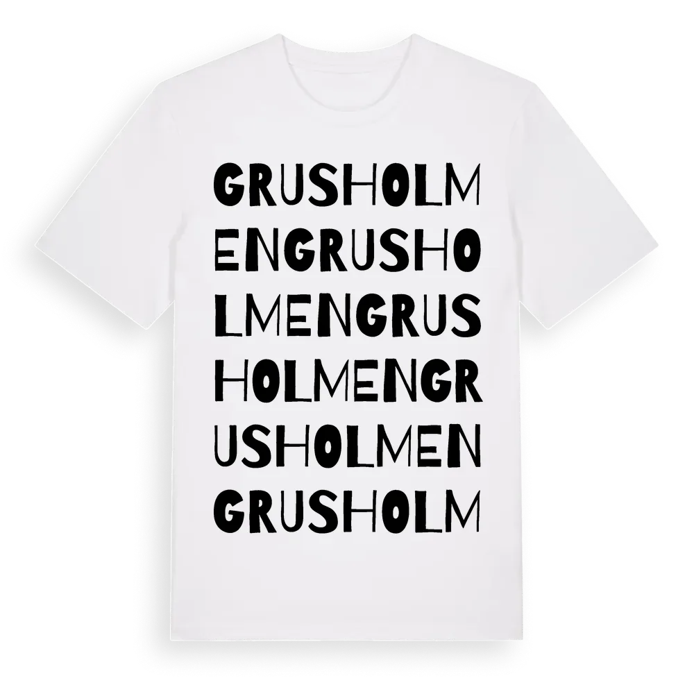 Grusholmen ordlek t-shirt är inspirerad av Grusholmen i Uppsala län, Sverige. Tröjan är designad för dig som har en speciell koppling till platsen – oavsett om du bor här, har rötterna här eller bara älskar Grusholmen.