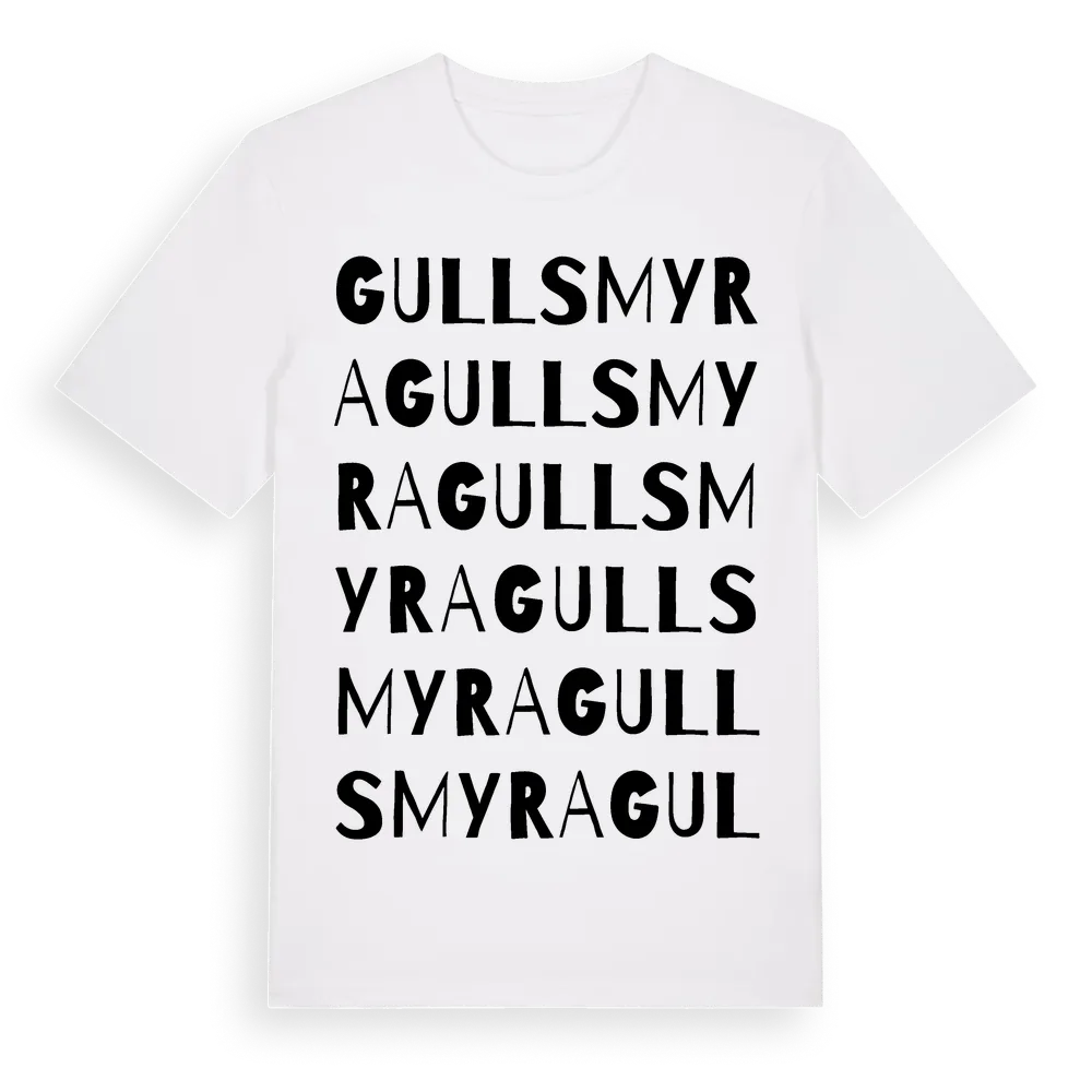 Gullsmyra ordlek t-shirt är inspirerad av Gullsmyra i Uppsala län, Sverige. Tröjan är designad för dig som har en speciell koppling till platsen – oavsett om du bor här, har rötterna här eller bara älskar Gullsmyra.