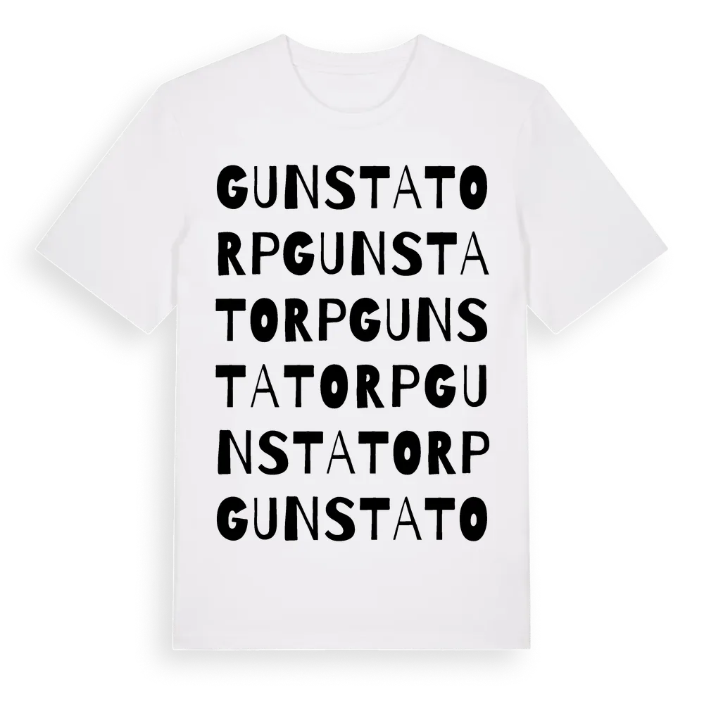 Gunstatorp ordlek t-shirt är inspirerad av Gunstatorp i Uppsala län, Sverige. Tröjan är designad för dig som har en speciell koppling till platsen – oavsett om du bor här, har rötterna här eller bara älskar Gunstatorp.