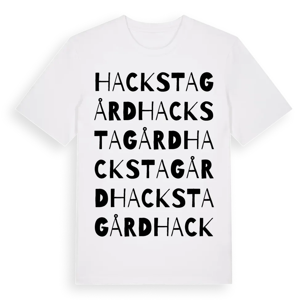 Hacksta Gård ordlek t-shirt är inspirerad av Hacksta Gård i Uppsala län, Sverige. Tröjan är designad för dig som har en speciell koppling till platsen – oavsett om du bor här, har rötterna här eller bara älskar Hacksta Gård.