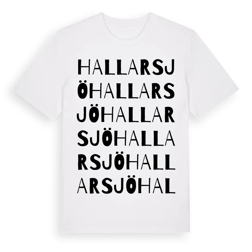 Hallarsjö ordlek t-shirt är inspirerad av Hallarsjö i Uppsala län, Sverige. Tröjan är designad för dig som har en speciell koppling till platsen – oavsett om du bor här, har rötterna här eller bara älskar Hallarsjö.