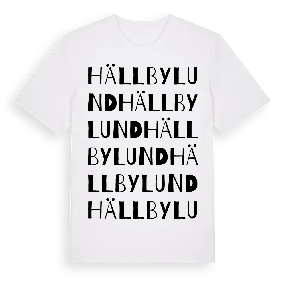 Hällbylund ordlek t-shirt är inspirerad av Hällbylund i Uppsala län, Sverige. Tröjan är designad för dig som har en speciell koppling till platsen – oavsett om du bor här, har rötterna här eller bara älskar Hällbylund.