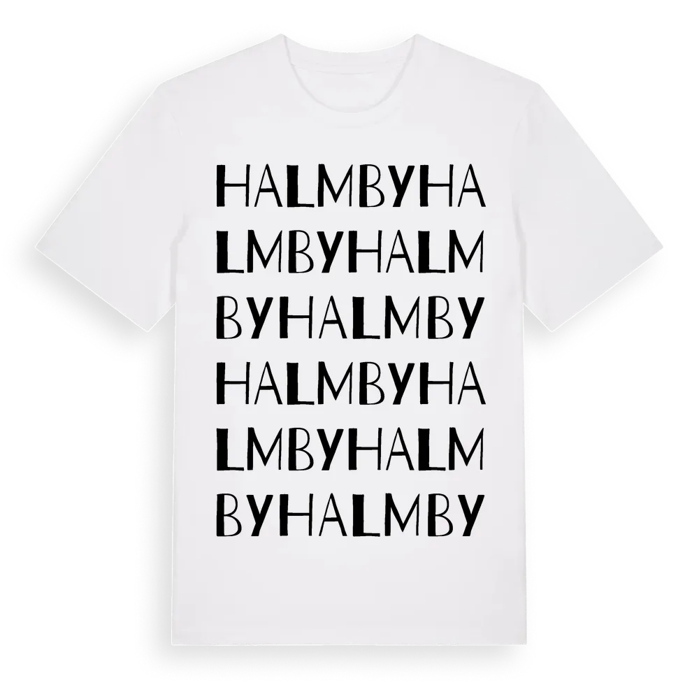 Halmby ordlek t-shirt är inspirerad av Halmby i Uppsala län, Sverige. Tröjan är designad för dig som har en speciell koppling till platsen – oavsett om du bor här, har rötterna här eller bara älskar Halmby.