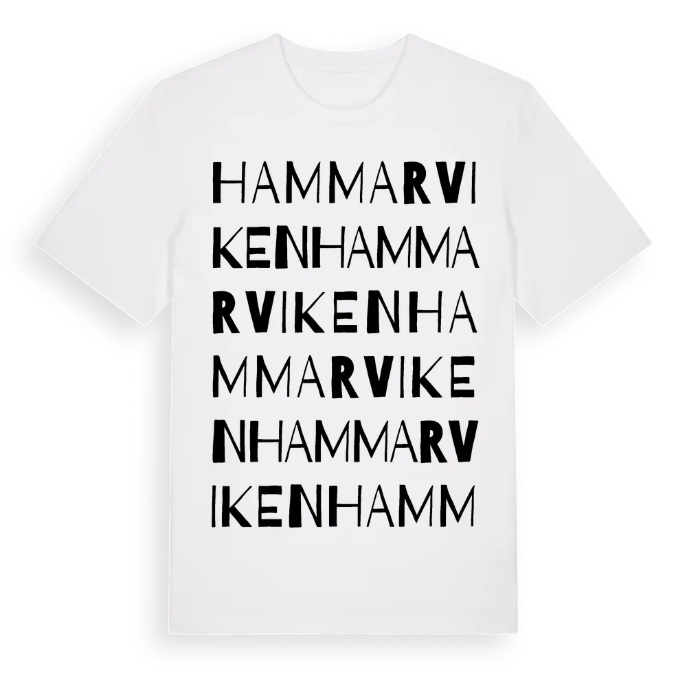 Hammarviken ordlek t-shirt är inspirerad av Hammarviken i Uppsala län, Sverige. Tröjan är designad för dig som har en speciell koppling till platsen – oavsett om du bor här, har rötterna här eller bara älskar Hammarviken.