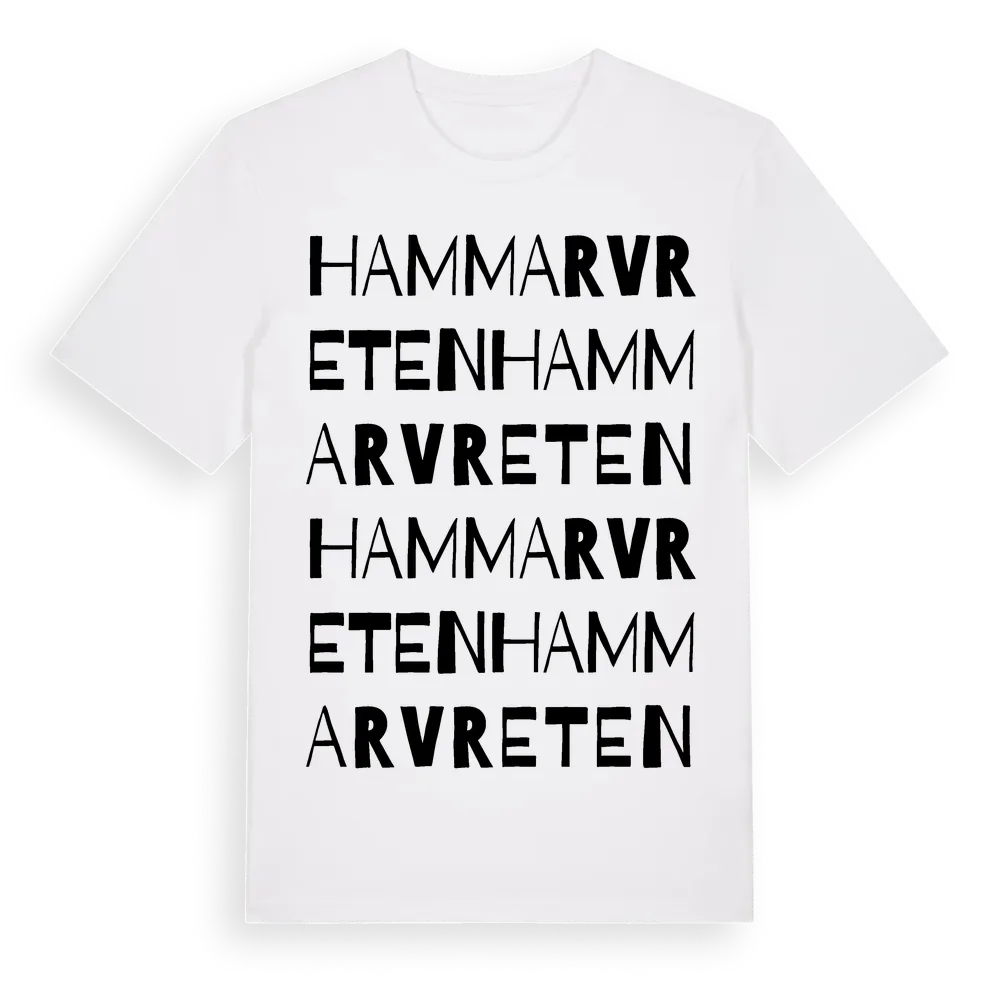 Hammarvreten ordlek t-shirt är inspirerad av Hammarvreten i Uppsala län, Sverige. Tröjan är designad för dig som har en speciell koppling till platsen – oavsett om du bor här, har rötterna här eller bara älskar Hammarvreten.