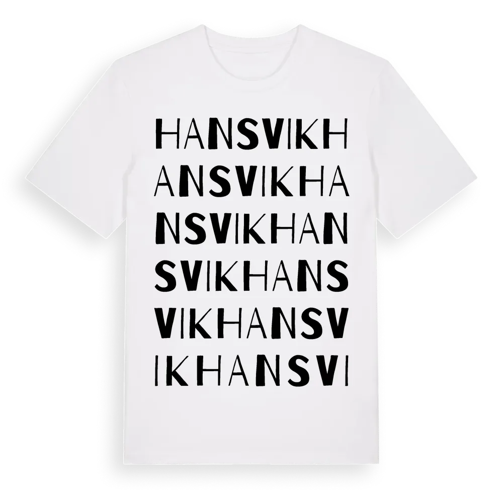 Hansvik ordlek t-shirt är inspirerad av Hansvik i Uppsala län, Sverige. Tröjan är designad för dig som har en speciell koppling till platsen – oavsett om du bor här, har rötterna här eller bara älskar Hansvik.
