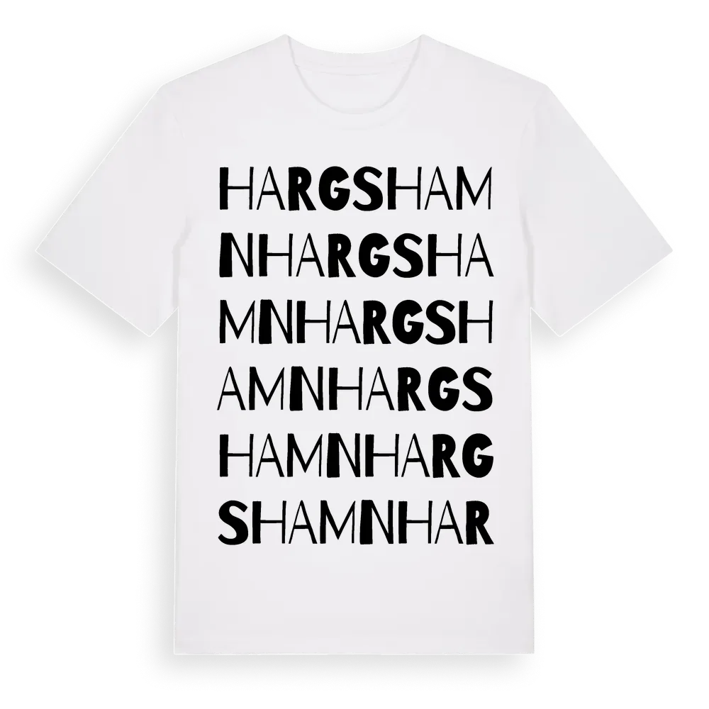 En ordlek byggd på Hargshamns namn. Subtilt och klurig – ett motiv som bara de som verkligen känner platsen fullt ut förstår. Premium bomull, unisex – från byn Hargshamn i Uppsala län.