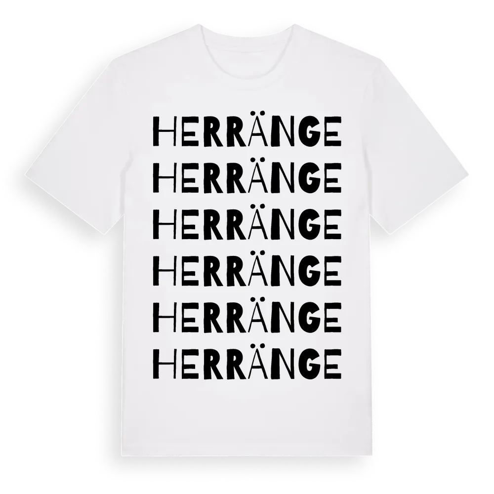 En ordlek byggd på Herränges namn. Subtilt och klurig – ett motiv som bara de som verkligen känner platsen fullt ut förstår. Premium bomull, unisex – från Herränge i Uppsala län.