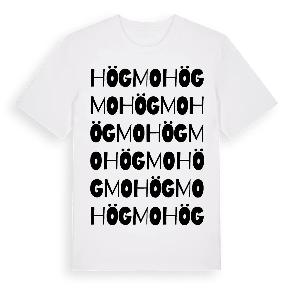 Högmo ordlek t-shirt är inspirerad av byn Högmo i Uppsala län, Sverige. Tröjan är designad för dig som har en speciell koppling till platsen – oavsett om du bor här, har rötterna här eller bara älskar Högmo.