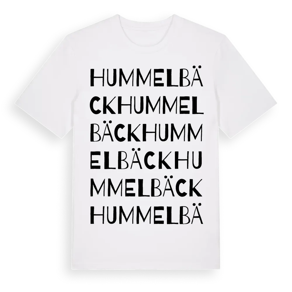 Hummelbäck ordlek t-shirt är inspirerad av Hummelbäck i Uppsala län, Sverige. Tröjan är designad för dig som har en speciell koppling till platsen – oavsett om du bor här, har rötterna här eller bara älskar Hummelbäck.