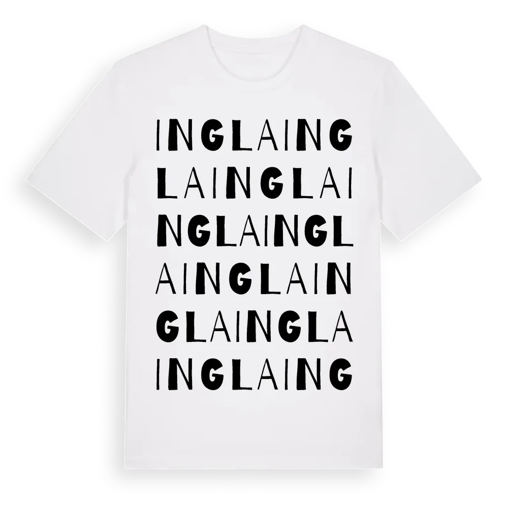 Ingla ordlek t-shirt är inspirerad av byn Ingla i Uppsala län, Sverige. Tröjan är designad för dig som har en speciell koppling till platsen – oavsett om du bor här, har rötterna här eller bara älskar Ingla.