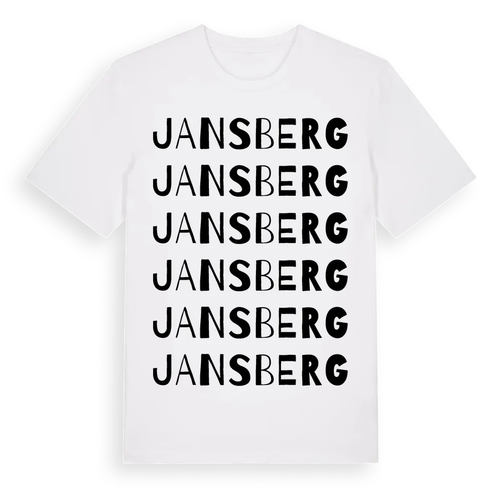 Jansberg ordlek t-shirt är inspirerad av Jansberg i Uppsala län, Sverige. Tröjan är designad för dig som har en speciell koppling till platsen – oavsett om du bor här, har rötterna här eller bara älskar Jansberg.