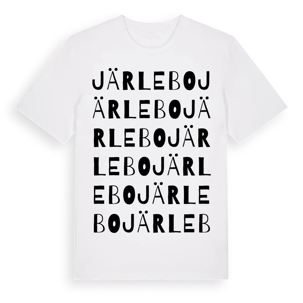 Järlebo ordlek t-shirt är inspirerad av Järlebo i Uppsala län, Sverige. Tröjan är designad för dig som har en speciell koppling till platsen – oavsett om du bor här, har rötterna här eller bara älskar Järlebo.