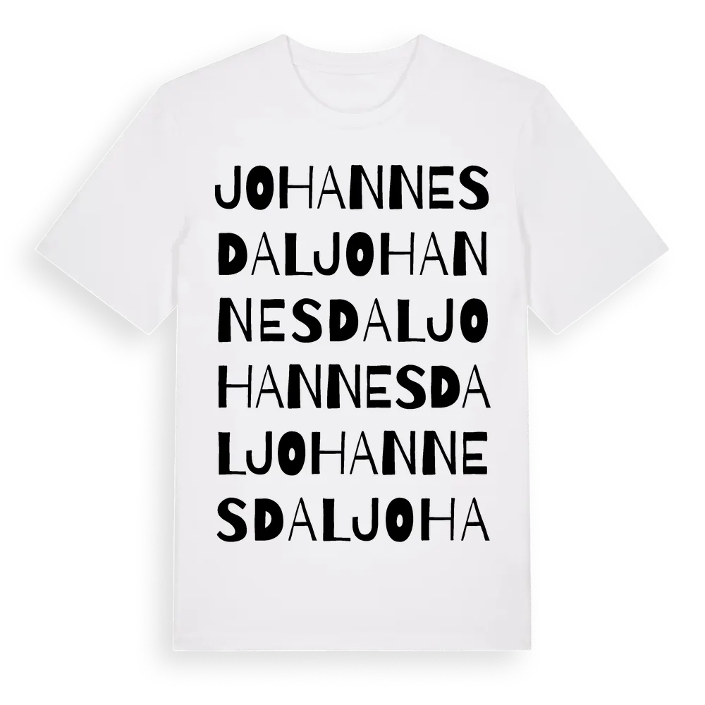 Johannesdal ordlek t-shirt är inspirerad av Johannesdal i Uppsala län, Sverige. Tröjan är designad för dig som har en speciell koppling till platsen – oavsett om du bor här, har rötterna här eller bara älskar Johannesdal.