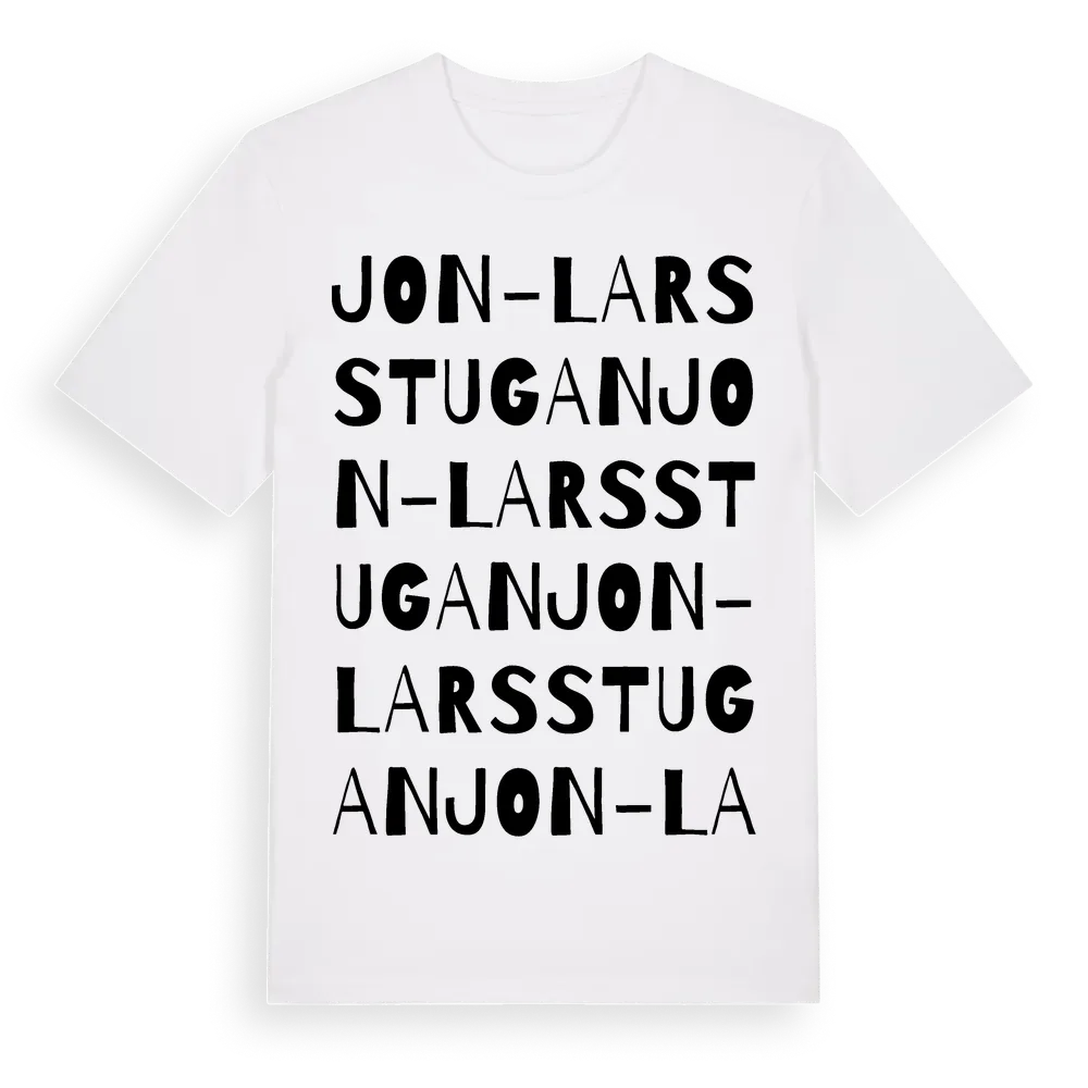 Jon-Larsstugan ordlek t-shirt är inspirerad av Jon-Larsstugan i Uppsala län, Sverige. Tröjan är designad för dig som har en speciell koppling till platsen – oavsett om du bor här, har rötterna här eller bara älskar Jon-Larsstugan.