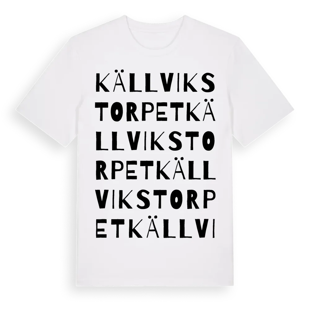 Källvikstorpet ordlek t-shirt är inspirerad av Källvikstorpet i Uppsala län, Sverige. Tröjan är designad för dig som har en speciell koppling till platsen – oavsett om du bor här, har rötterna här eller bara älskar Källvikstorpet.