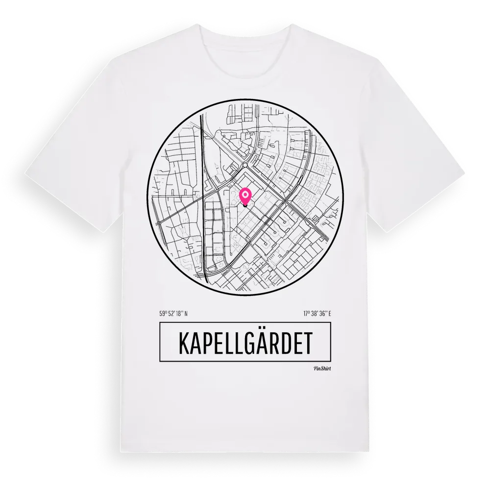 Kapellgärdet t-shirt är inspirerad av stadsdelen Kapellgärdet i Uppsala län, Sverige. Tröjan är designad för dig som har en speciell koppling till platsen – oavsett om du bor här, har rötterna här eller bara älskar Kapellgärdet.