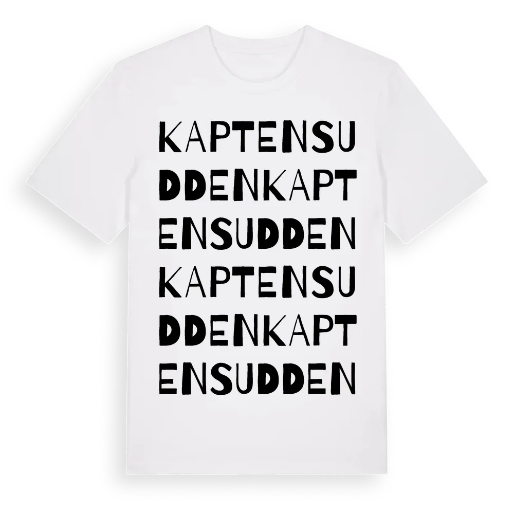 Kaptensudden ordlek t-shirt är inspirerad av Kaptensudden i Uppsala län, Sverige. Tröjan är designad för dig som har en speciell koppling till platsen – oavsett om du bor här, har rötterna här eller bara älskar Kaptensudden.