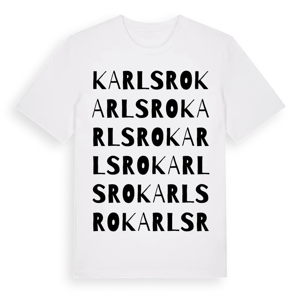 Karlsro ordlek t-shirt är inspirerad av Karlsro i Uppsala län, Sverige. Tröjan är designad för dig som har en speciell koppling till platsen – oavsett om du bor här, har rötterna här eller bara älskar Karlsro.