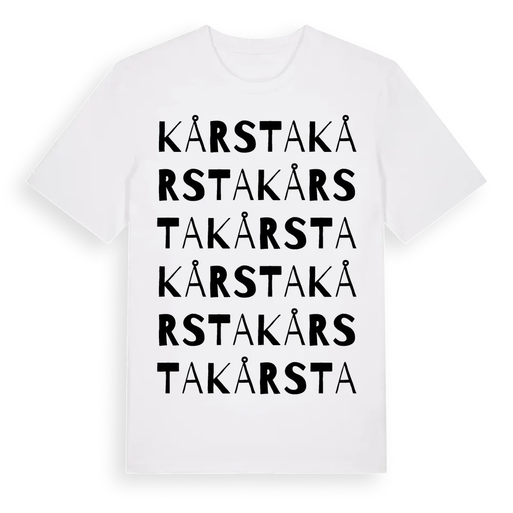 Kårsta ordlek t-shirt är inspirerad av byn Kårsta i Uppsala län, Sverige. Tröjan är designad för dig som har en speciell koppling till platsen – oavsett om du bor här, har rötterna här eller bara älskar Kårsta.