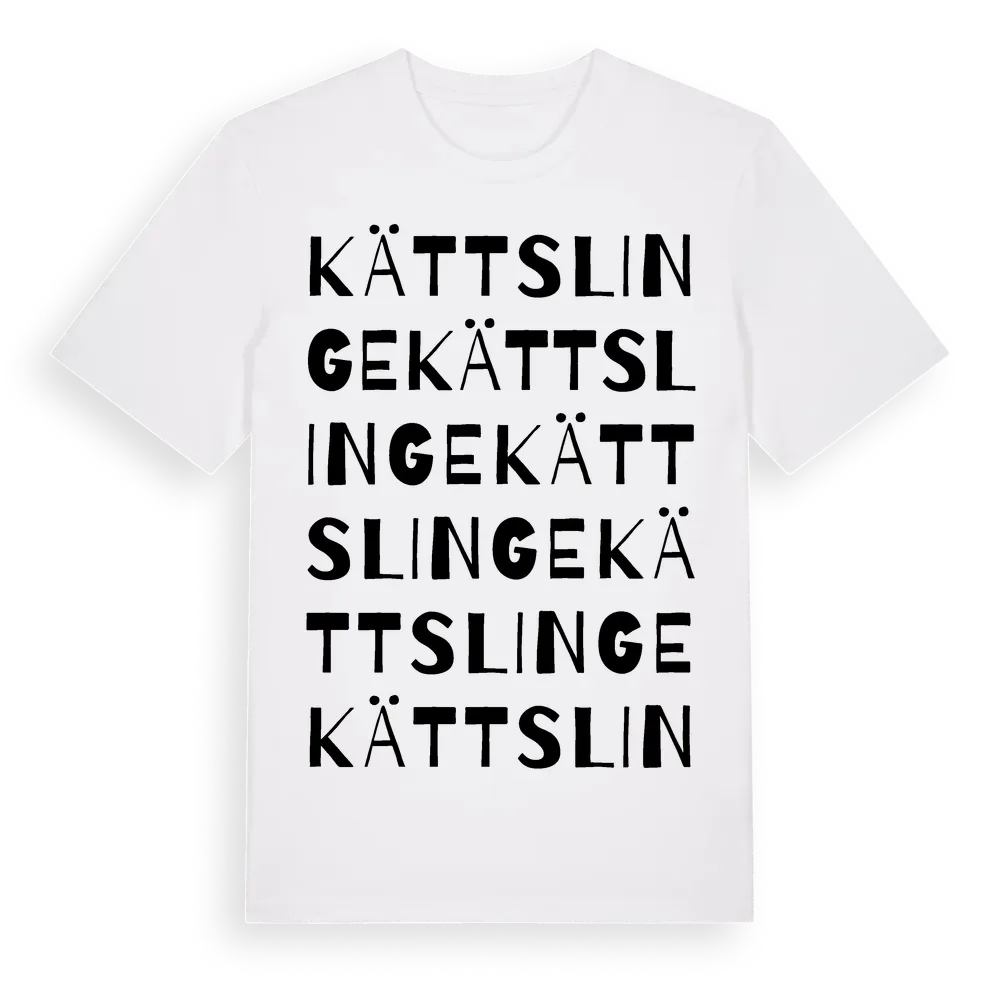Kättslinge ordlek t-shirt är inspirerad av byn Kättslinge i Uppsala län, Sverige. Tröjan är designad för dig som har en speciell koppling till platsen – oavsett om du bor här, har rötterna här eller bara älskar Kättslinge.