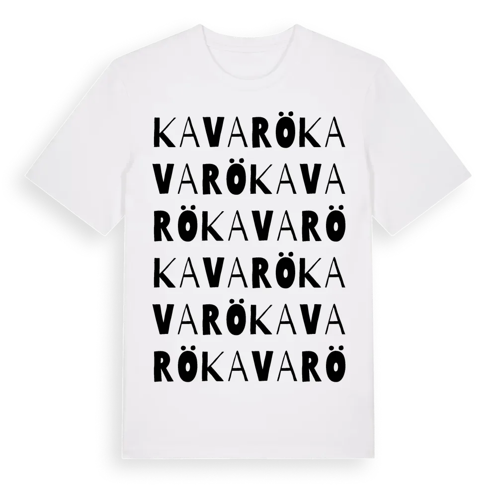 Kavarö ordlek t-shirt är inspirerad av byn Kavarö i Uppsala län, Sverige. Tröjan är designad för dig som har en speciell koppling till platsen – oavsett om du bor här, har rötterna här eller bara älskar Kavarö.