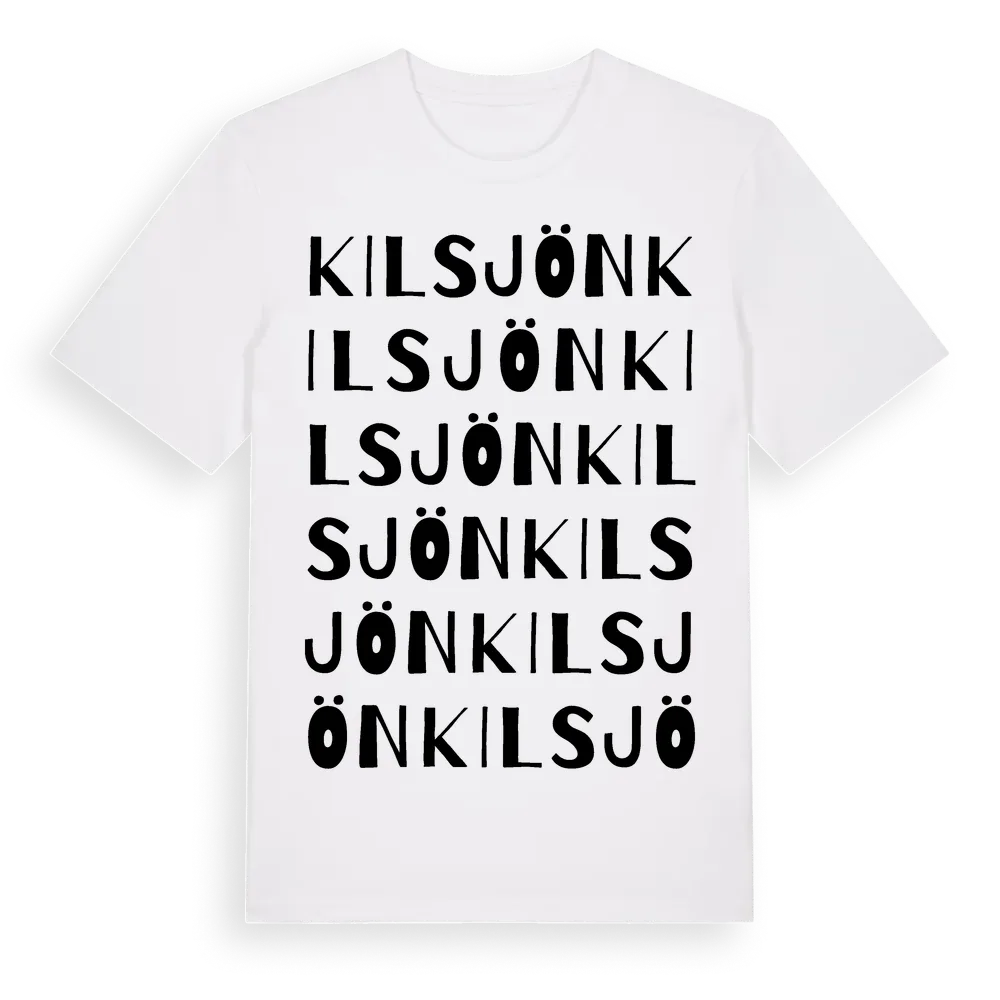 Kilsjön ordlek t-shirt är inspirerad av Kilsjön i Uppsala län, Sverige. Tröjan är designad för dig som har en speciell koppling till platsen – oavsett om du bor här, har rötterna här eller bara älskar Kilsjön.