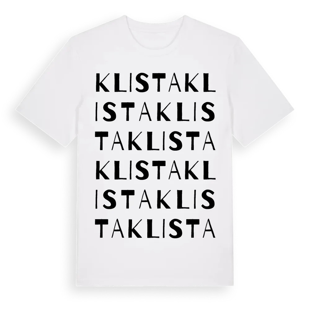 Klista ordlek t-shirt är inspirerad av byn Klista i Uppsala län, Sverige. Tröjan är designad för dig som har en speciell koppling till platsen – oavsett om du bor här, har rötterna här eller bara älskar Klista.