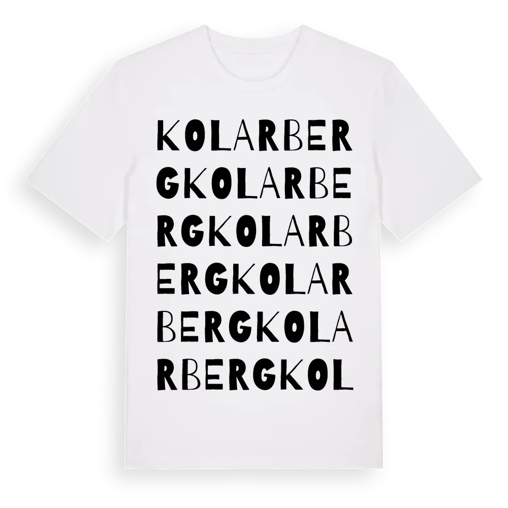 Kolarberg ordlek t-shirt är inspirerad av Kolarberg i Uppsala län, Sverige. Tröjan är designad för dig som har en speciell koppling till platsen – oavsett om du bor här, har rötterna här eller bara älskar Kolarberg.