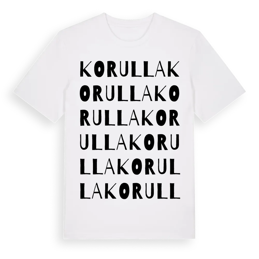 Korulla ordlek t-shirt är inspirerad av Korulla i Uppsala län, Sverige. Tröjan är designad för dig som har en speciell koppling till platsen – oavsett om du bor här, har rötterna här eller bara älskar Korulla.