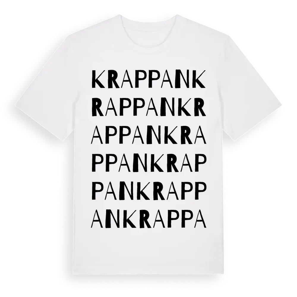 Krappan ordlek t-shirt är inspirerad av Krappan i Uppsala län, Sverige. Tröjan är designad för dig som har en speciell koppling till platsen – oavsett om du bor här, har rötterna här eller bara älskar Krappan.