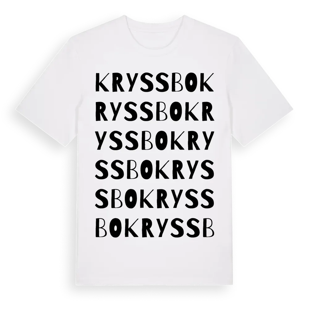 Kryssbo ordlek t-shirt är inspirerad av byn Kryssbo i Uppsala län, Sverige. Tröjan är designad för dig som har en speciell koppling till platsen – oavsett om du bor här, har rötterna här eller bara älskar Kryssbo.