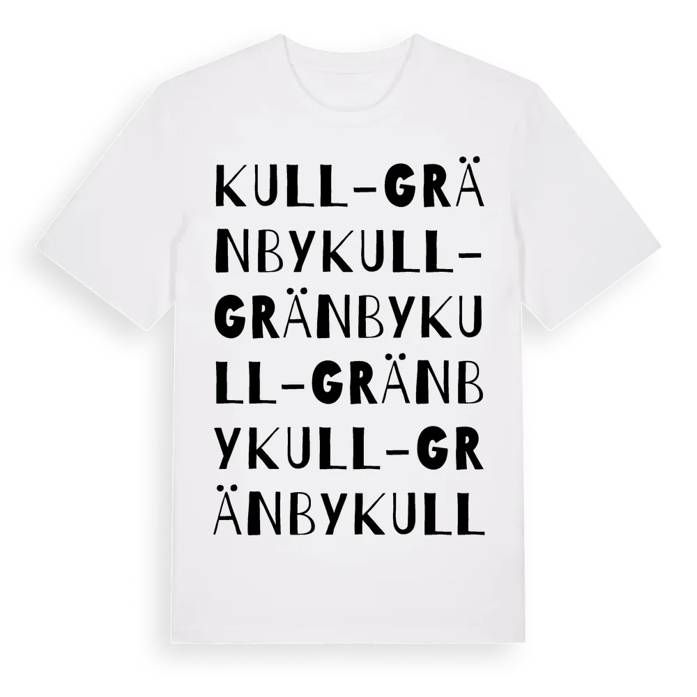 Kull-Gränby ordlek t-shirt är inspirerad av Kull-Gränby i Uppsala län, Sverige. Tröjan är designad för dig som har en speciell koppling till platsen – oavsett om du bor här, har rötterna här eller bara älskar Kull-Gränby.