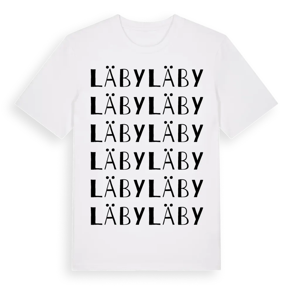 Läby ordlek t-shirt är inspirerad av byn Läby i Uppsala län, Sverige. Tröjan är designad för dig som har en speciell koppling till platsen – oavsett om du bor här, har rötterna här eller bara älskar Läby.
